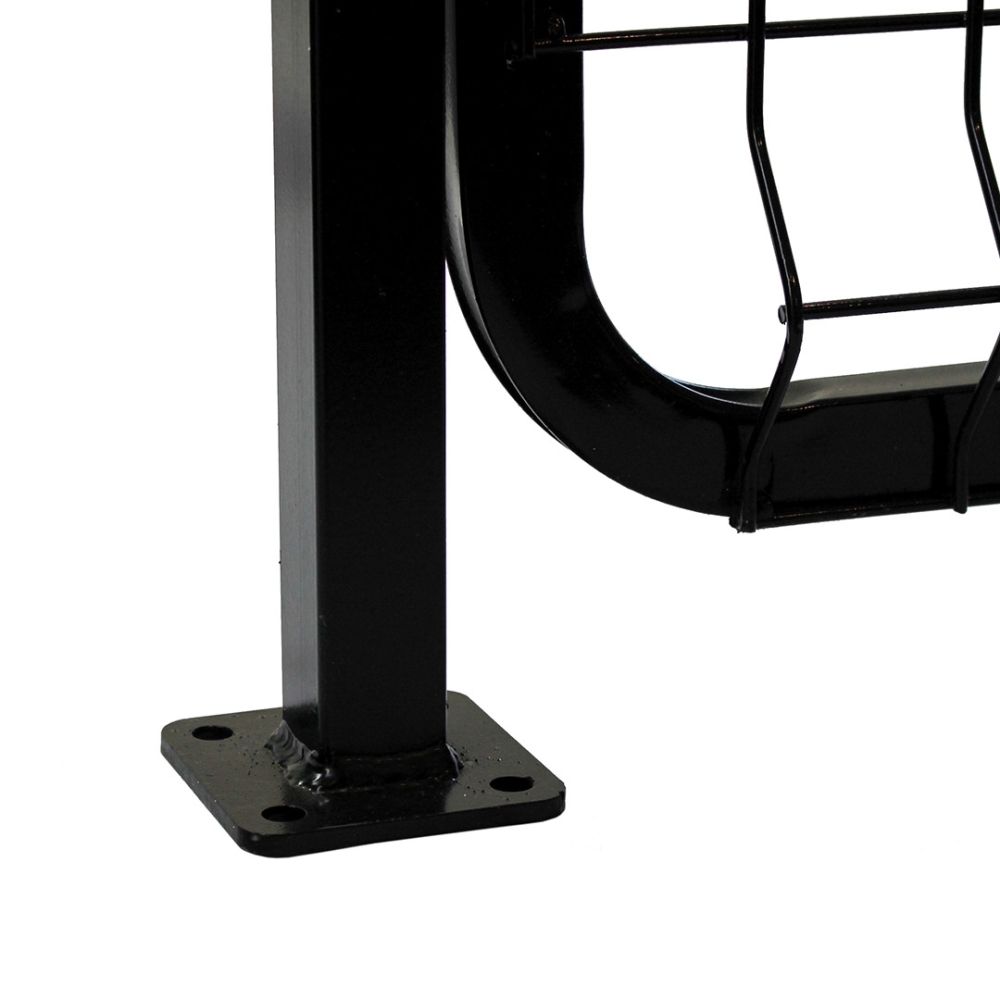 Nossos portões possuem fecho bico papagaio que permite a utilização de um cadeado para maior proteção, caso necessário, e além disso podem ser facilmente instalados com parafusos e buchas ou parabolts, pois já vêm com uma base metálica para fixação em pisos de concreto ou outras bases.
