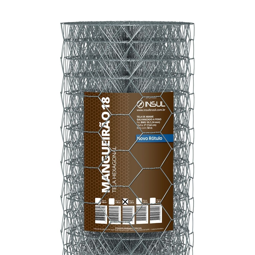 A Tela Hexagonal Mangueirão Fio 18 Insul é uma solução prática, econômica e eficiente para cercamentos que exigem boa resistência. Fabricada em arame de aço galvanizado a fogo com espessura de 1,24mm (fio 18) e malha hexagonal de 7,6cm, é comercializada em rolos com 50 metros, perfeita para jardins, áreas residenciais e rurais, além de pequenas criações de animais.